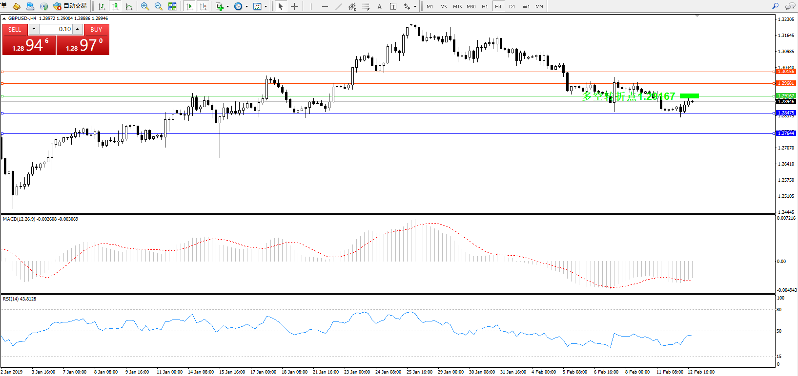 交易策略:1.29167下方看跌,目标1.284751.27644