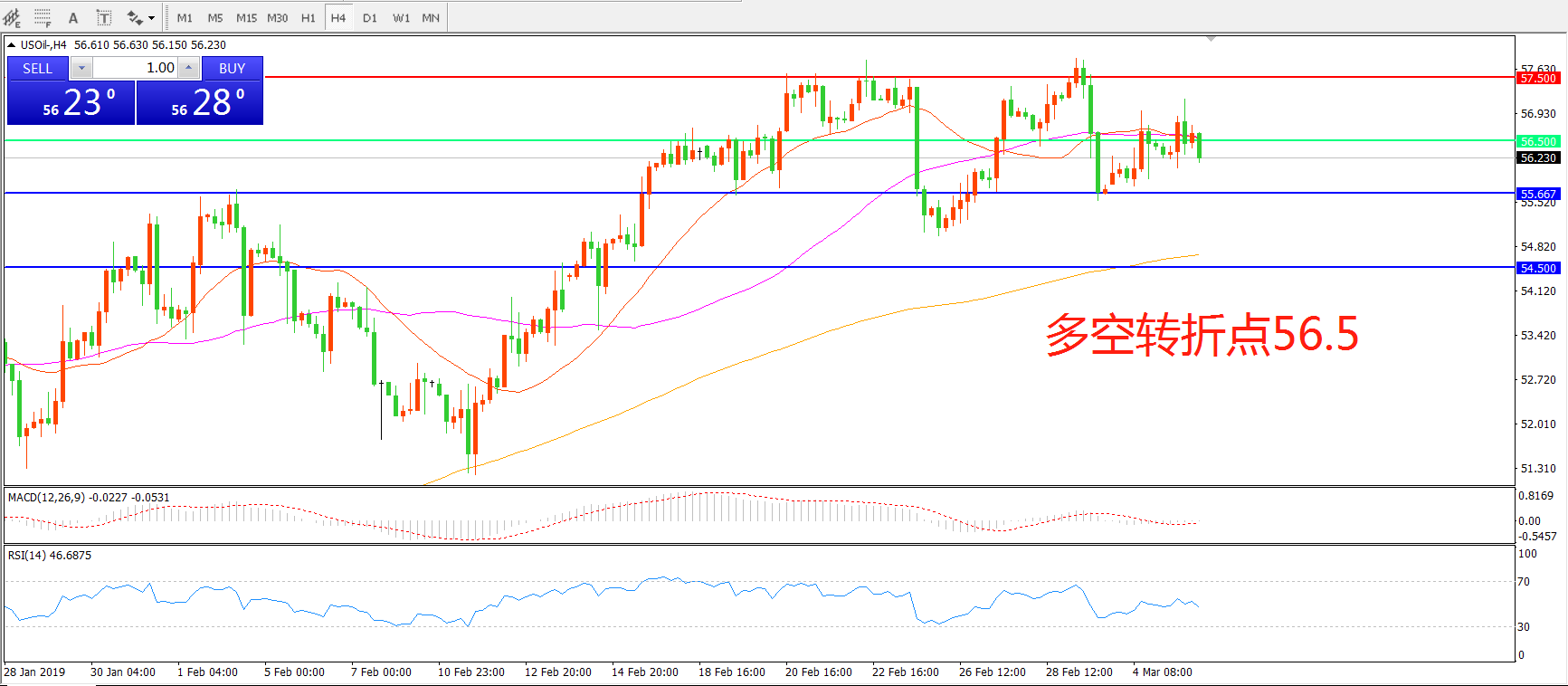 交易策略:在56.50之下看跌,目标55.60 54.50