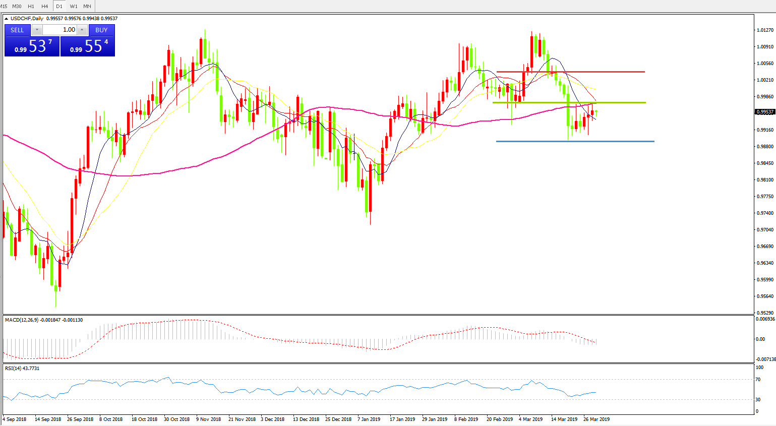 交易策略:在0.9975之下,看跌,目标价位为 0.9890,然后为 0.9850。