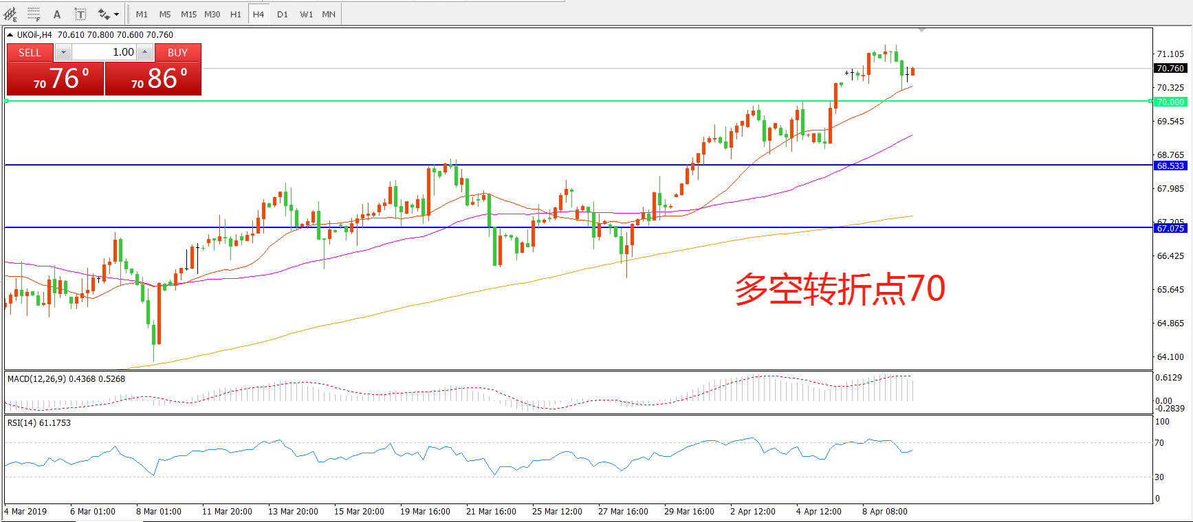 交易策略:在70.00之上看涨,目标72.00    74.50