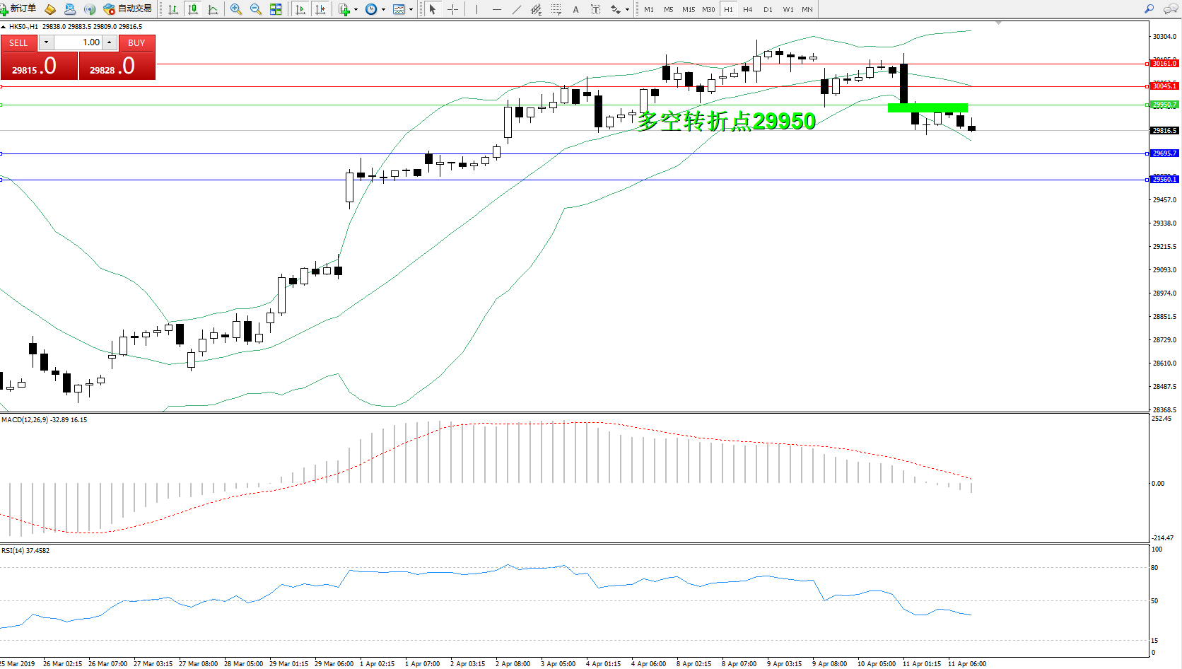 交易策略:29950下方看跌,目标29595、29560