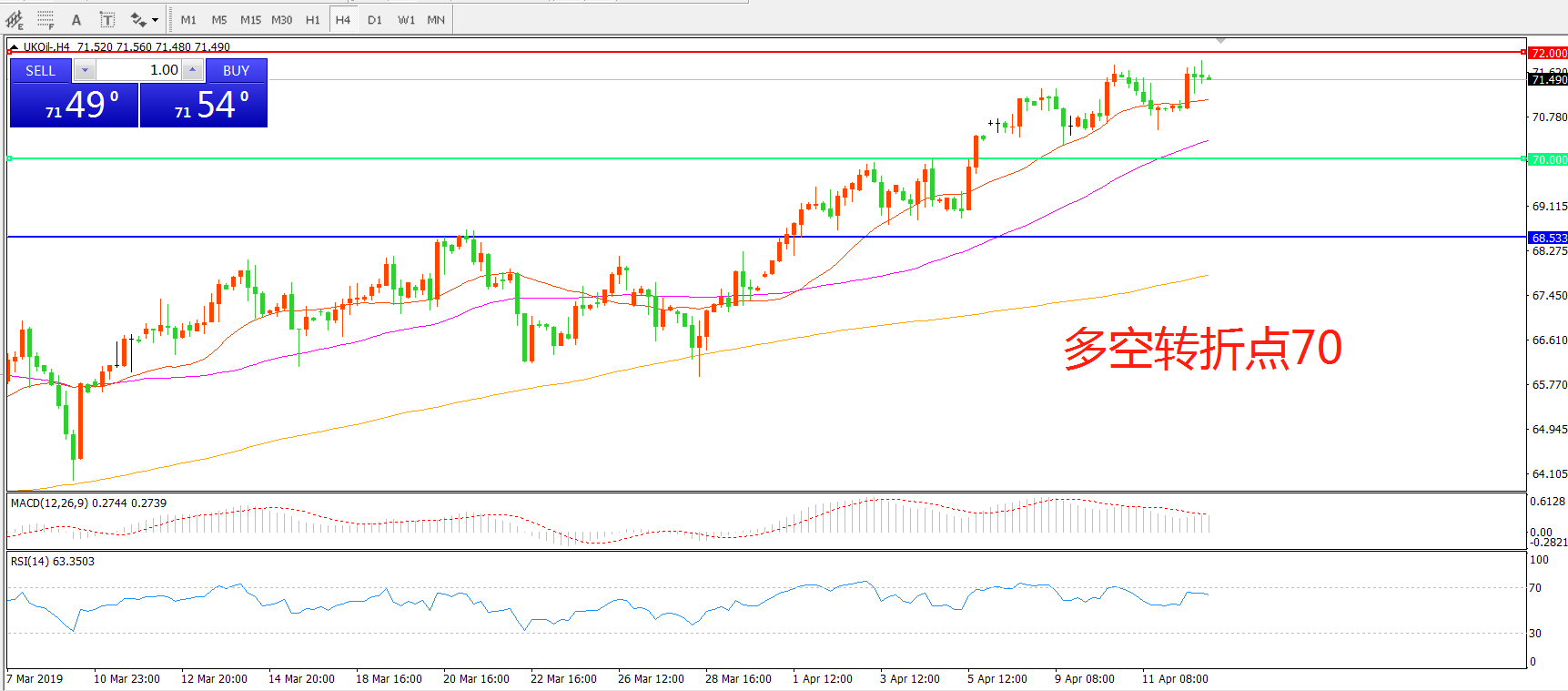 多空转折点:70.00