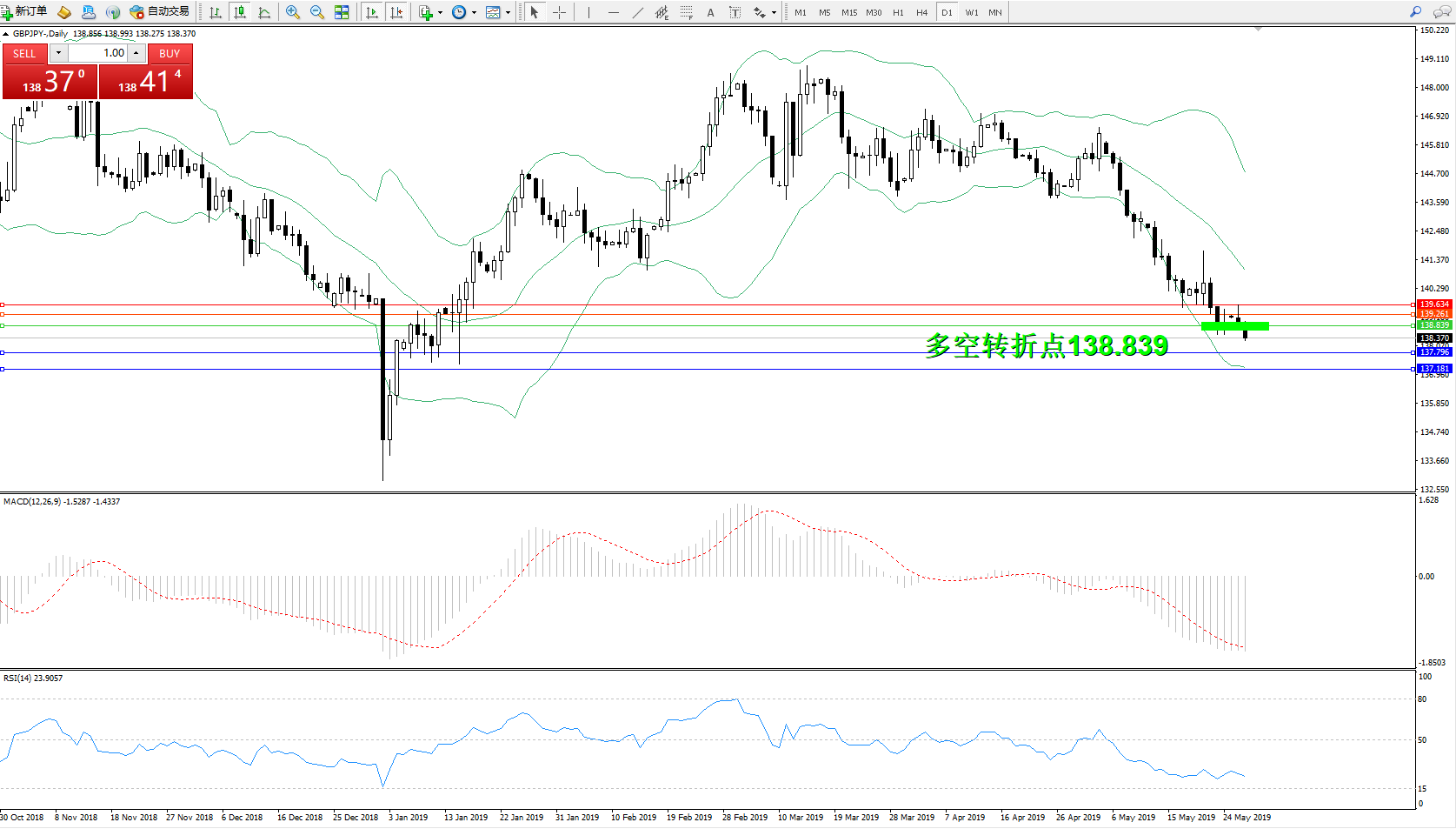 交易策略:138.839下方看跌,目标137.796、137.181
