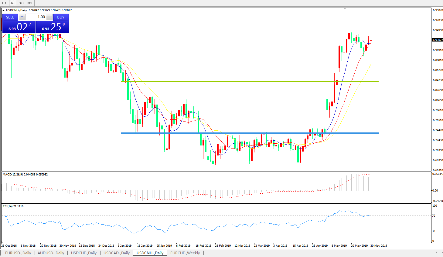 美元兑人民币USDCNH    日线图: