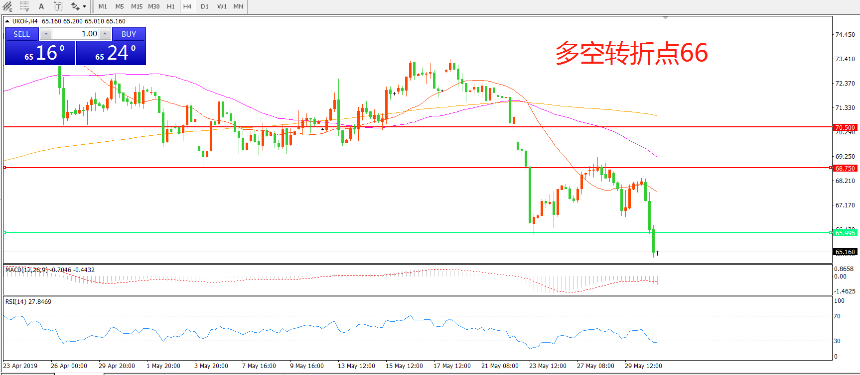 北京时间周四(5月30日)23:00,EIA数据公布,截至5月24日当周,美国原油库存减少28.2万桶至4.765亿桶,市场预估为减少85.7万桶。与此同时,美国原油产量依旧持续增长。受此影响,布油价格大幅下跌,收报65.16美元/桶。欧佩克及其合作伙伴在限制原油产能方面的优柔寡断,地缘政治的动荡给原油的基本面蒙上了一层阴影。