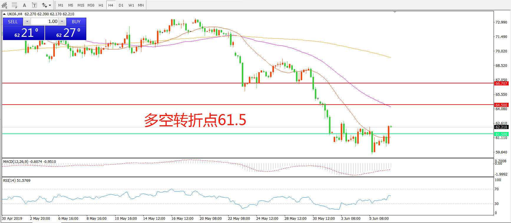 交易策略:在61.50之下看跌,目标57.50 53.00