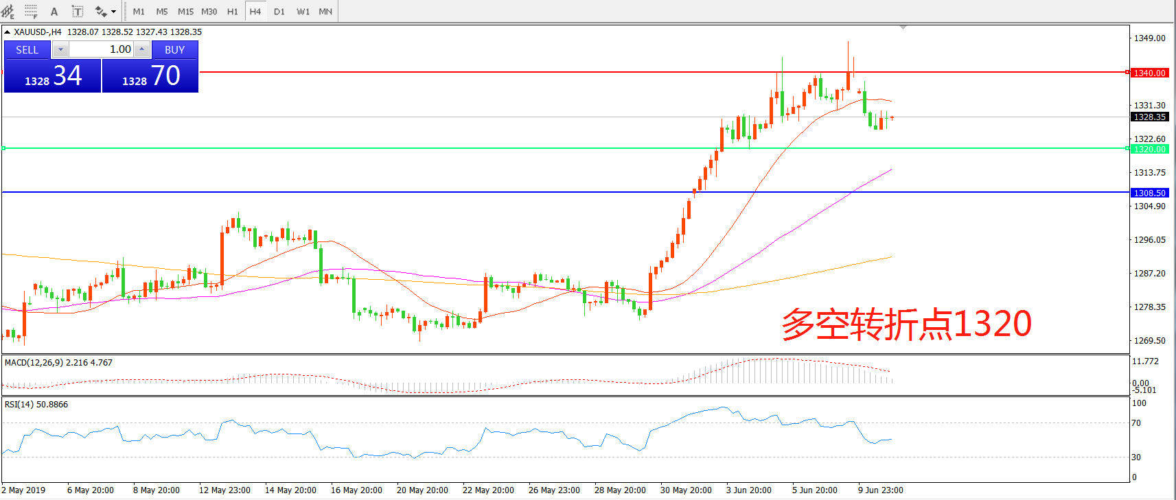 周一(6月10日)美墨达成贸易协议风险情绪回暖施压金价回调,现货黄金从14个月高位回落,美市盘中最低下探至1324.50美元/盎司,根据中国人民银行公布数据显示,截至5月底,黄金储备达6161万盎司,较4月末增加51万盎司。,连续6个月增持,央行增持的实物需求依然是金价多头强劲的支撑。市场依然普遍看好金价后市前景。