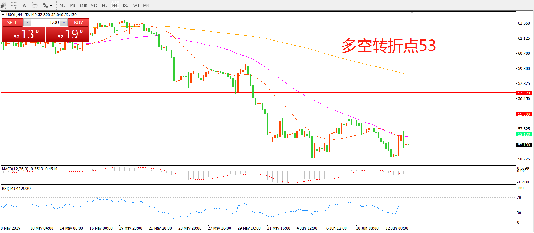 交易策略:在53.00之下看跌,目标50.00 46.00