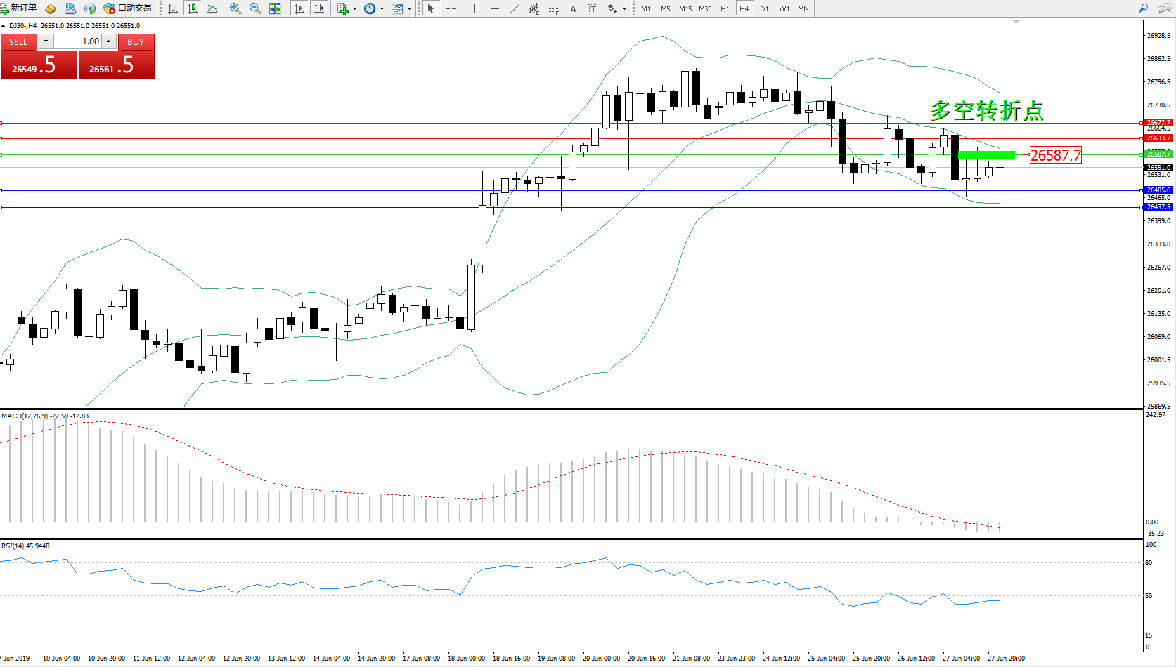 交易策略:26587下方看跌,目标26485、26437