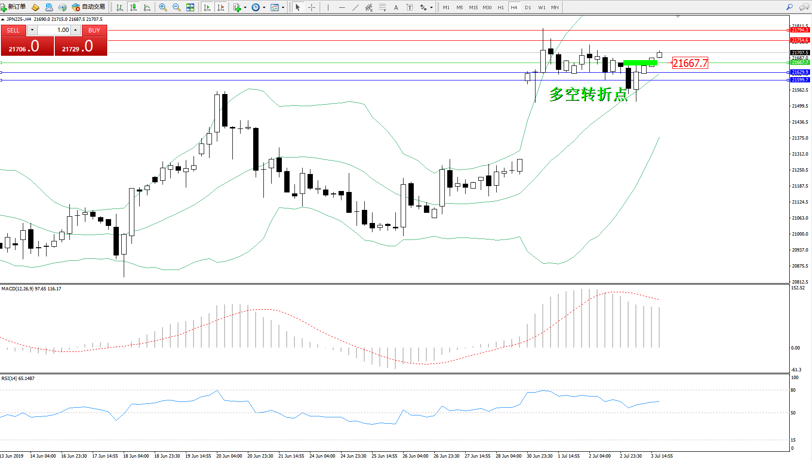 日经225指数7月3日(周三)收盘下跌127.34点,跌幅0.59%,报21607.50点。外围环境不佳,G20峰会后中美贸易状况只是从前期的争端再次进入到谈判阶段。中美重启贸易磋商也部分影响此前市场对美联储减息步伐的预期。市场不出现大的地缘政治风险的情况下,日经或缓慢下行。
