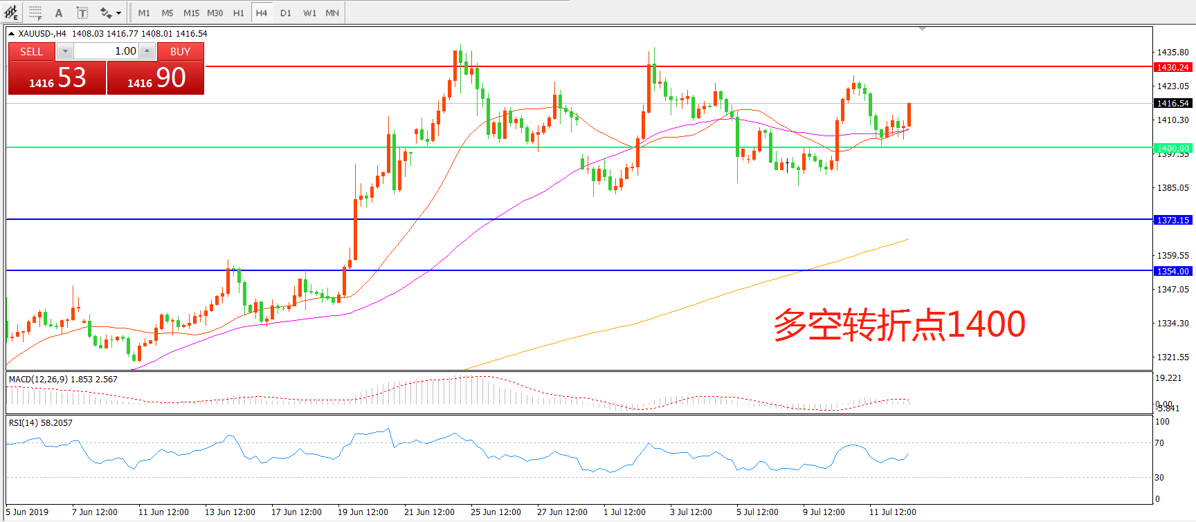 交易策略:在1400.00之上看涨,目标1430.00 1490.00