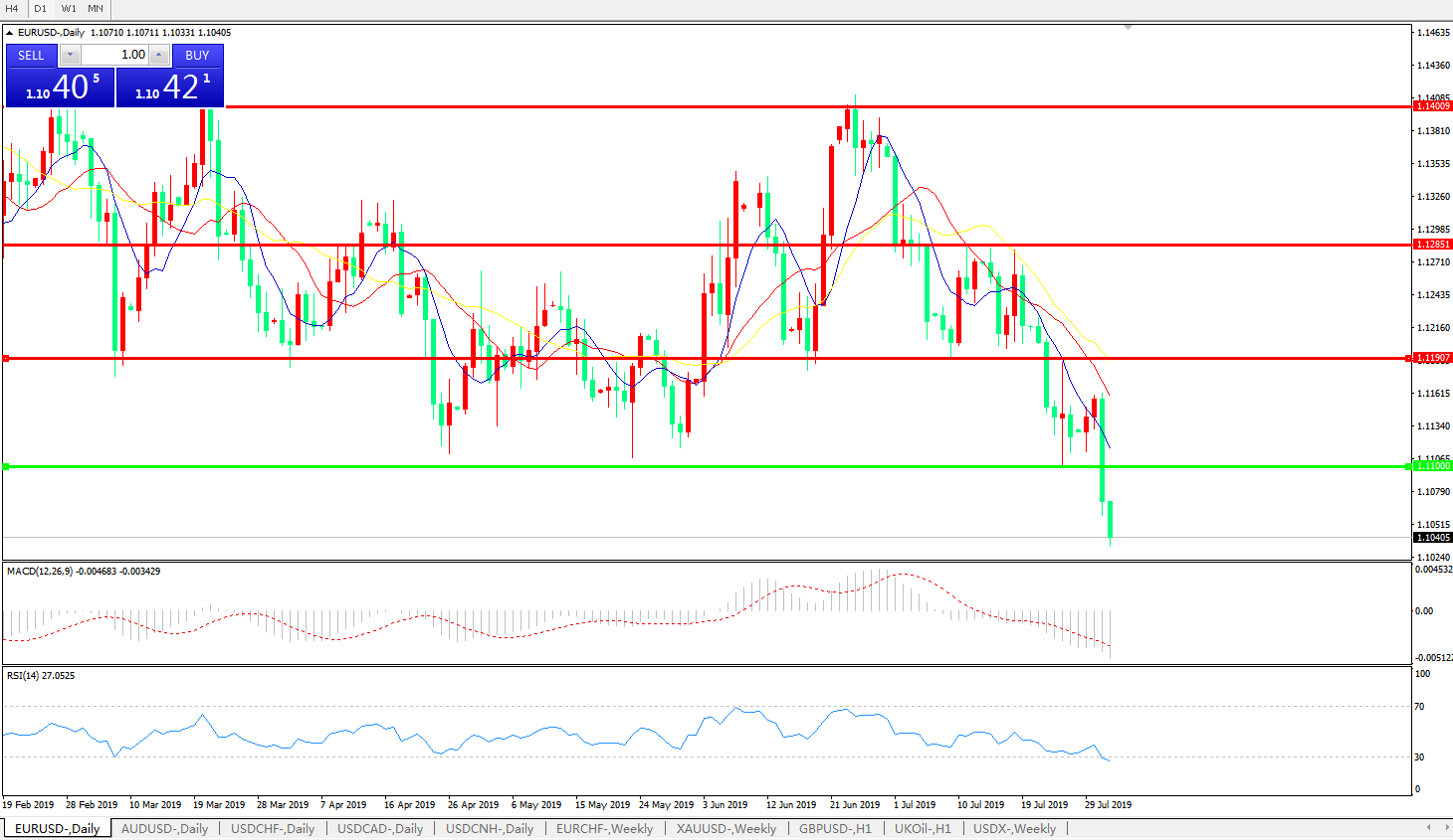支撑位:1.1000、1.0000