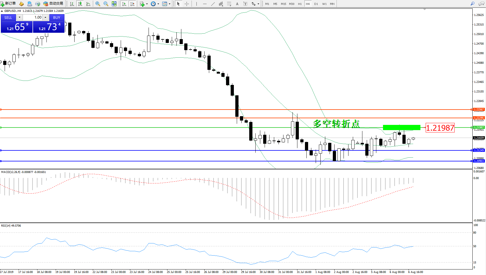交易策略:1.21987下方看跌,目标1.21249、1.20903