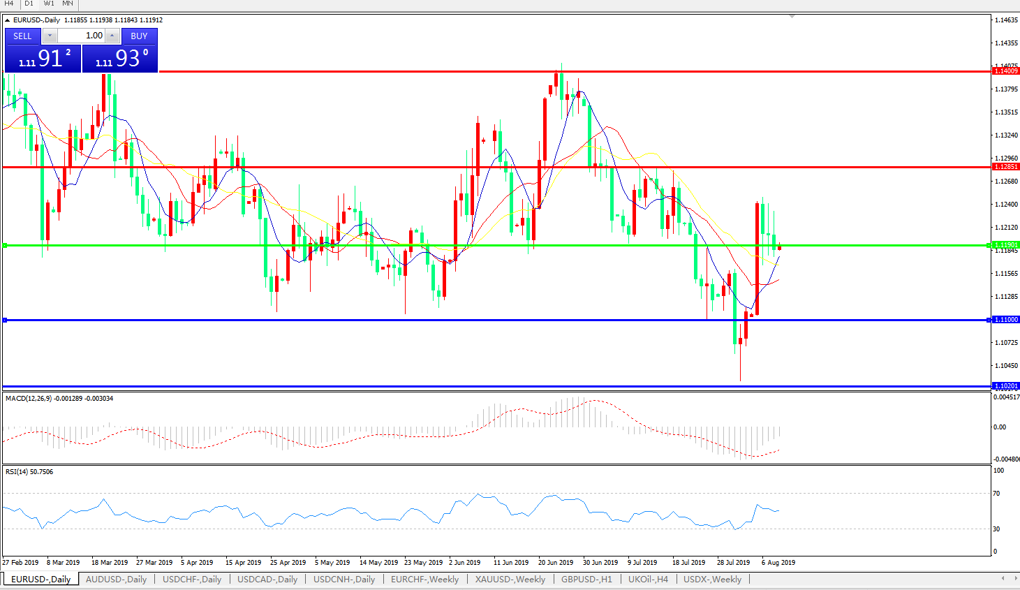 备选策略:1.1190下方看跌,目标1.1100、1.1020