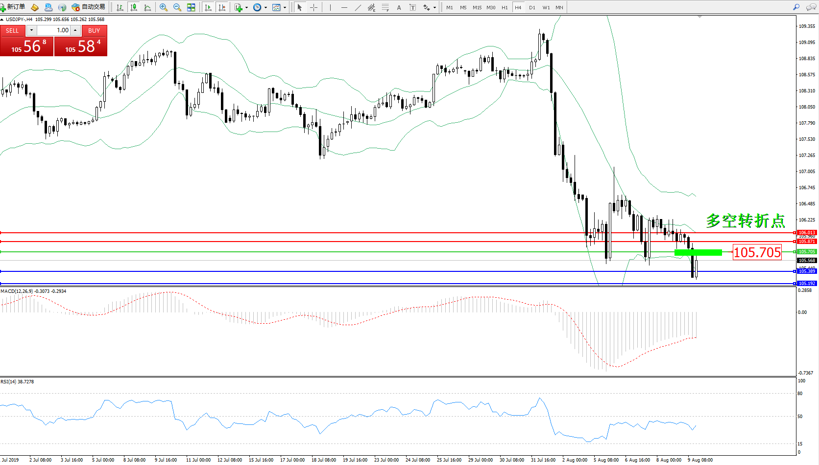 交易策略:105.705下方看跌,目标105.389105.192