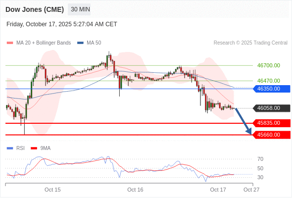 在 46350.00 之下,看跌,目标价位为 45835.00 ,然后为 45660.00 。