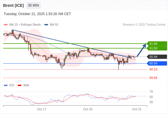 在 60.50 之上,看涨,目标价位为 61.50 ,然后为 61.80 。