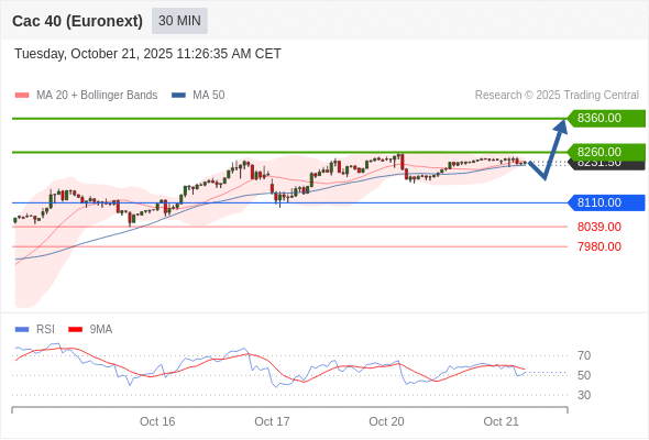 在 8110.00 之上,看涨,目标价位为 8260.00 ,然后为 8360.00 。