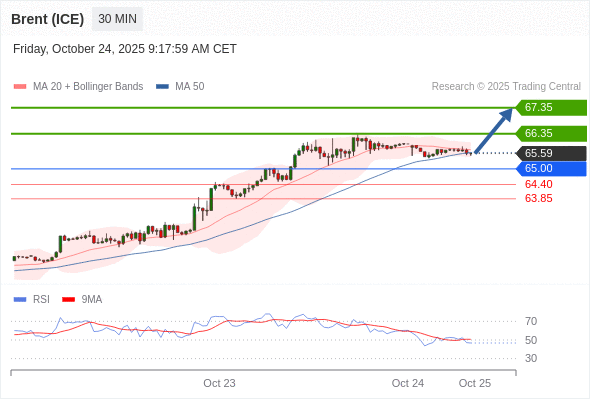 在 65.00 之上,看涨,目标价位为 66.35 ,然后为 67.35 。