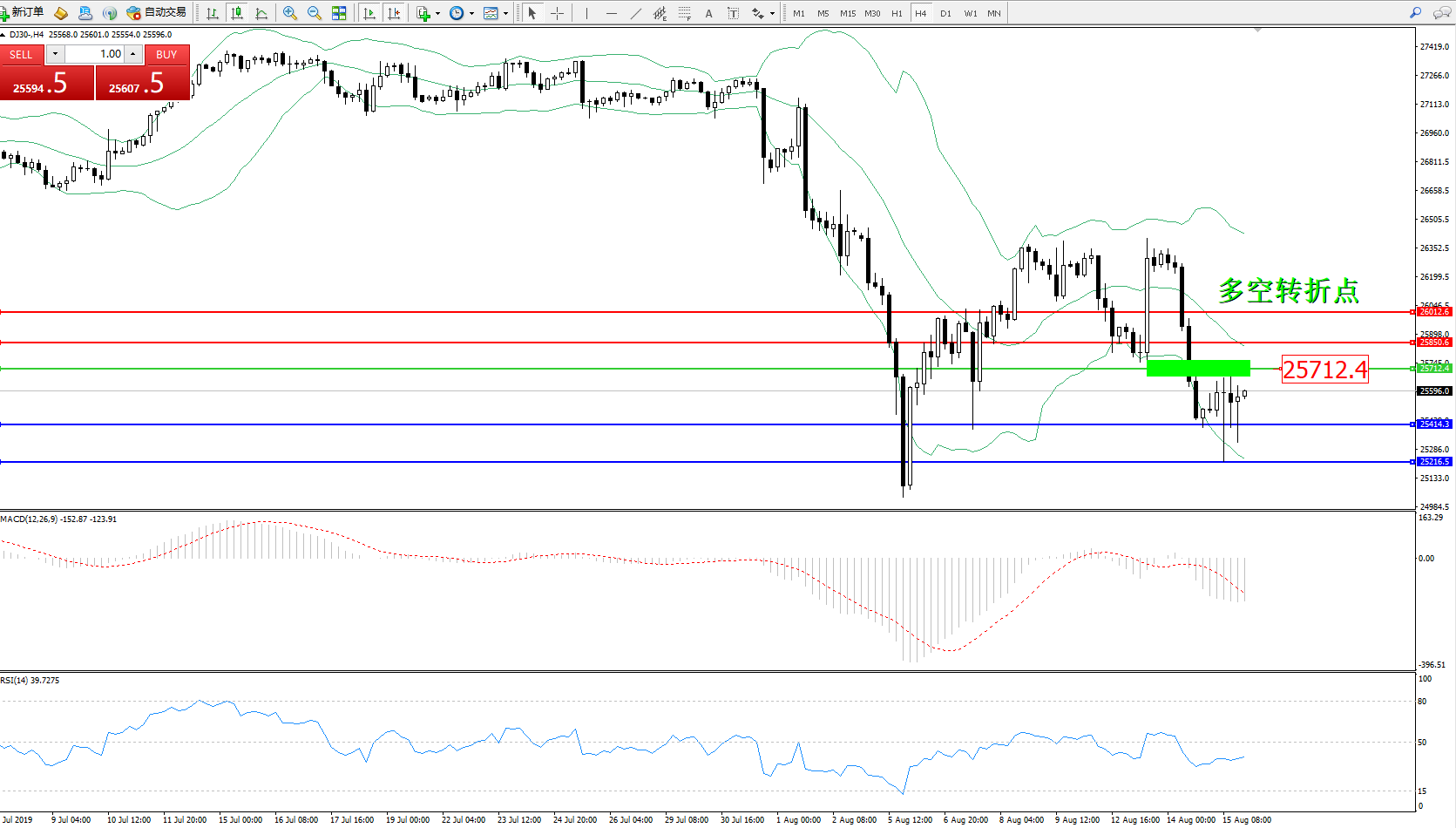 道琼斯指数8月15日(周四)收盘上涨99.60点,涨幅0.39%,报25578.98点。由于担忧全球经济增速放缓,市场对美国长期国债的需求激增,美国三十年期国债收益率跌至纪录低位,美国7月零售销售月率大幅上扬,表明尽管汽车相关购买有所减少,消费者仍在购买其他产品,这可以缓解金融市场对经济可能进入衰退的担忧。数据表明三季度伊始,消费者支出强劲。