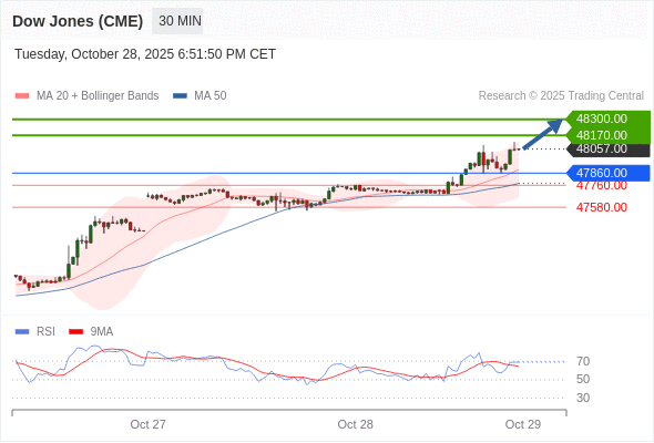 在 47760.00 之上,看涨,目标价位为 48170.00 ,然后为 48300.00 。