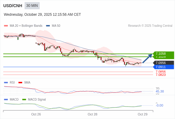美元/人民币 当日内 : 有上涨的可能,目标价位定在 7.1058 。
