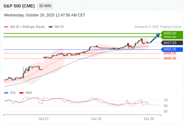 在 6902.00 之上,看涨,目标价位为 6950.00 ,然后为 6963.00 。
