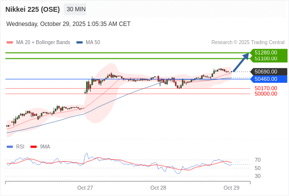 日经225股指期货 (OSE) 当日内: 目标位为51280.00。