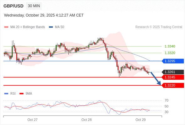 在 1.3295 之下,看跌,目标价位为 1.3245 ,然后为 1.3220 。