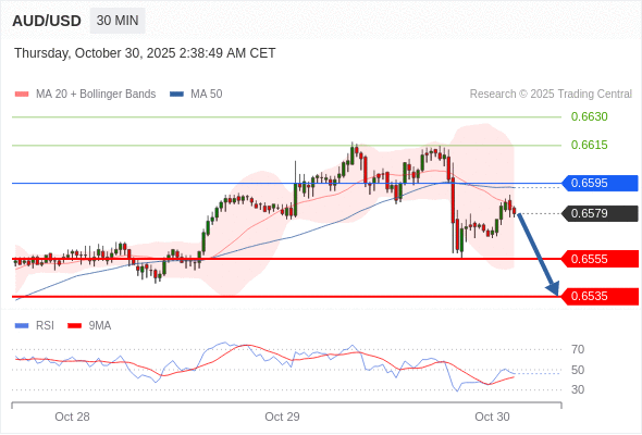 在 0.6595 之下,看跌,目标价位为 0.6555 ,然后为 0.6535 。