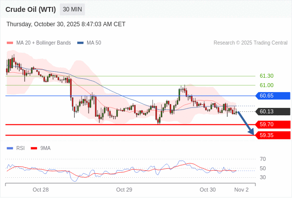 在 60.65 之下,看跌,目标价位为 59.70 ,然后为 59.35 。