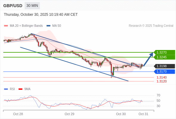 在 1.3170 之上,看涨,目标价位为 1.3245 ,然后为 1.3270 。