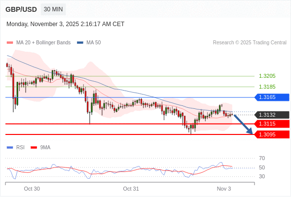 在 1.3165 之下,看跌,目标价位为 1.3115 ,然后为 1.3095 。