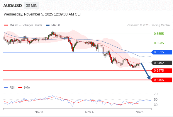 交易策略: 在 0.6515 之下,看跌,目标价位为 0.6475 ,然后为 0.6455 。