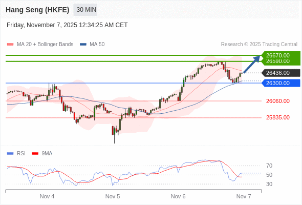 在 26300.00 之上,看涨,目标价位为 26590.00 ,然后为 26670.00 。