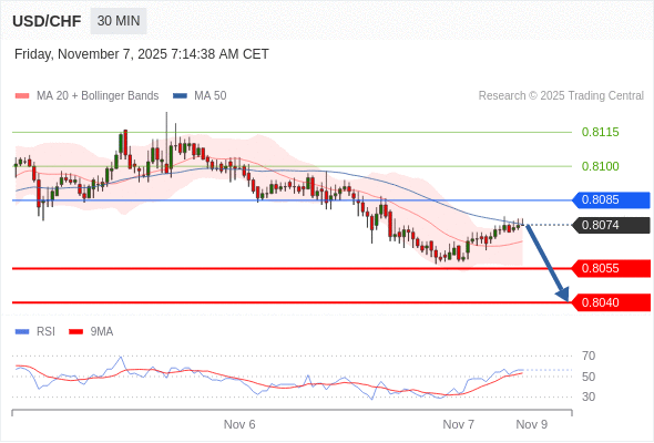 在 0.8085 之下,看跌,目标价位为 0.8055 ,然后为 0.8040 。