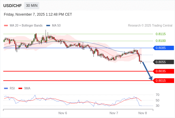 在 0.8085 之下,看跌,目标价位为 0.8035 ,然后为 0.8015 。