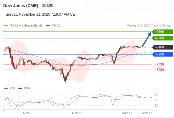 在 47290 之上,看涨,目标价位为 47700 ,然后为 47860 。