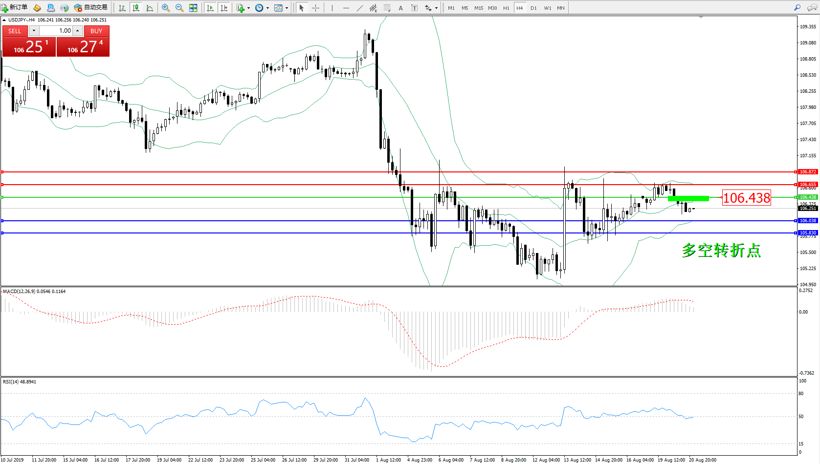 美元兑日元下跌0.38%至106.23;之前触及106.16的低点;欧洲方面英国和意大利的政局不稳前景,连同国际贸易环境的顾虑犹存,都带动风险偏好情绪恶化,令避险日元受宠。美国总统特朗普再次敦促美联储大举降息,将基准利率下调1个百分点。本周市场聚焦于杰克逊霍尔央行年会,等待着美联储主席鲍威尔的发言。