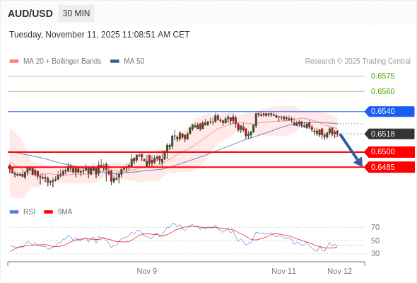 在 0.6540 之下,看跌,目标价位为 0.6500 ,然后为 0.6485 。