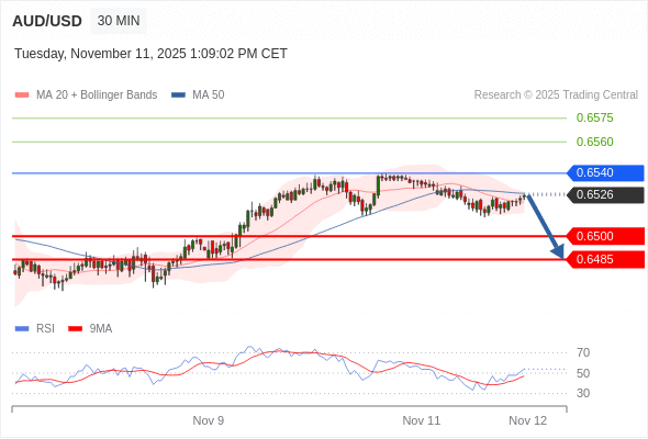 交易策略: 在 0.6540 之下,看跌,目标价位为 0.6500 ,然后为 0.6485 。