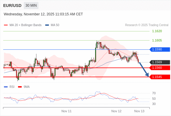 在 1.1590 之下,看跌,目标价位为 1.1560 ,然后为 1.1545 。