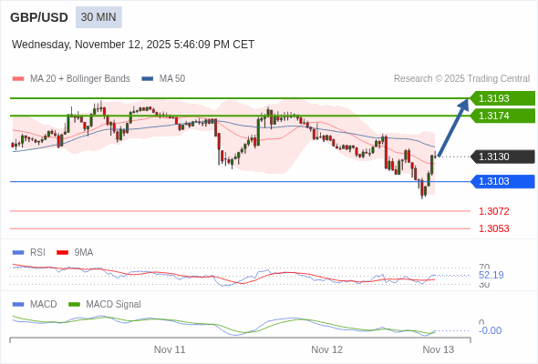 替代方案: 在1.3103以下,期待1.3072和1.3053。