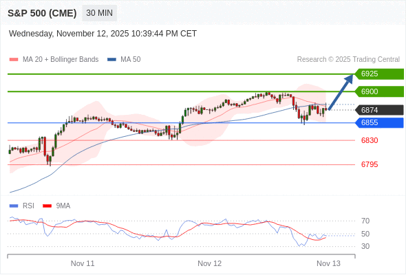 交易策略: 在 6855 之上,看涨,目标价位为 6900 ,然后为 6925 。