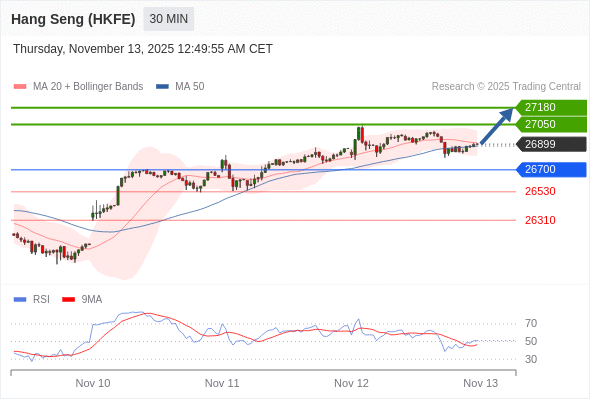 在 26700 之上,看涨,目标价位为 27050 ,然后为 27180 。