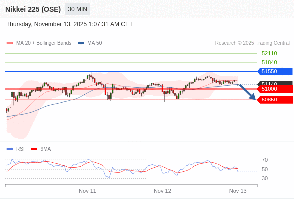 在 51550 之下,看跌,目标价位为 51000 ,然后为 50650 。
