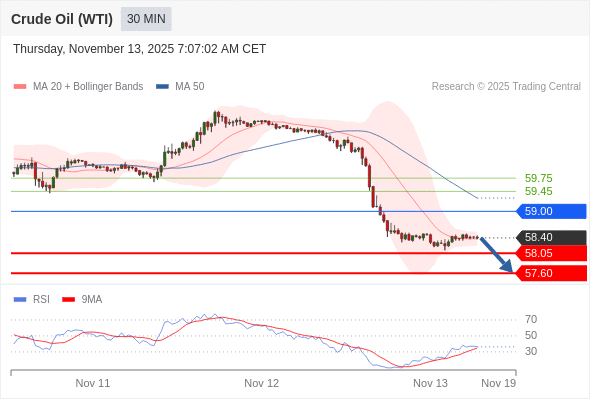 在 59.00 之下,看跌,目标价位为 58.05 ,然后为 57.60 。