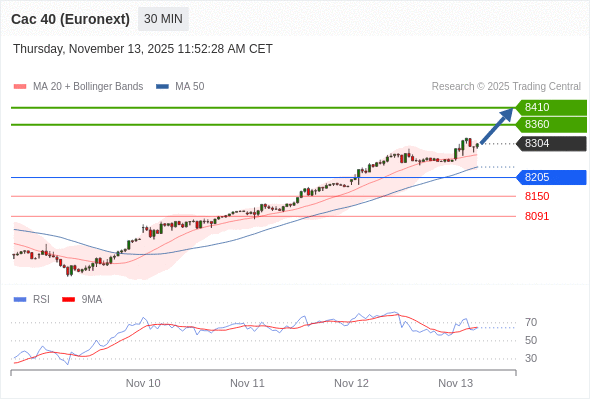 在 8205 之上,看涨,目标价位为 8360 ,然后为 8410 。