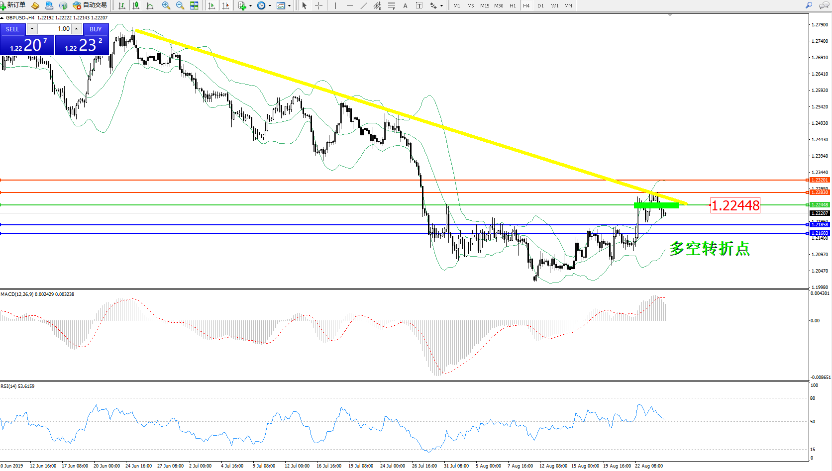 备选策略:1.22448上方看涨,目标1.22830、1.23201