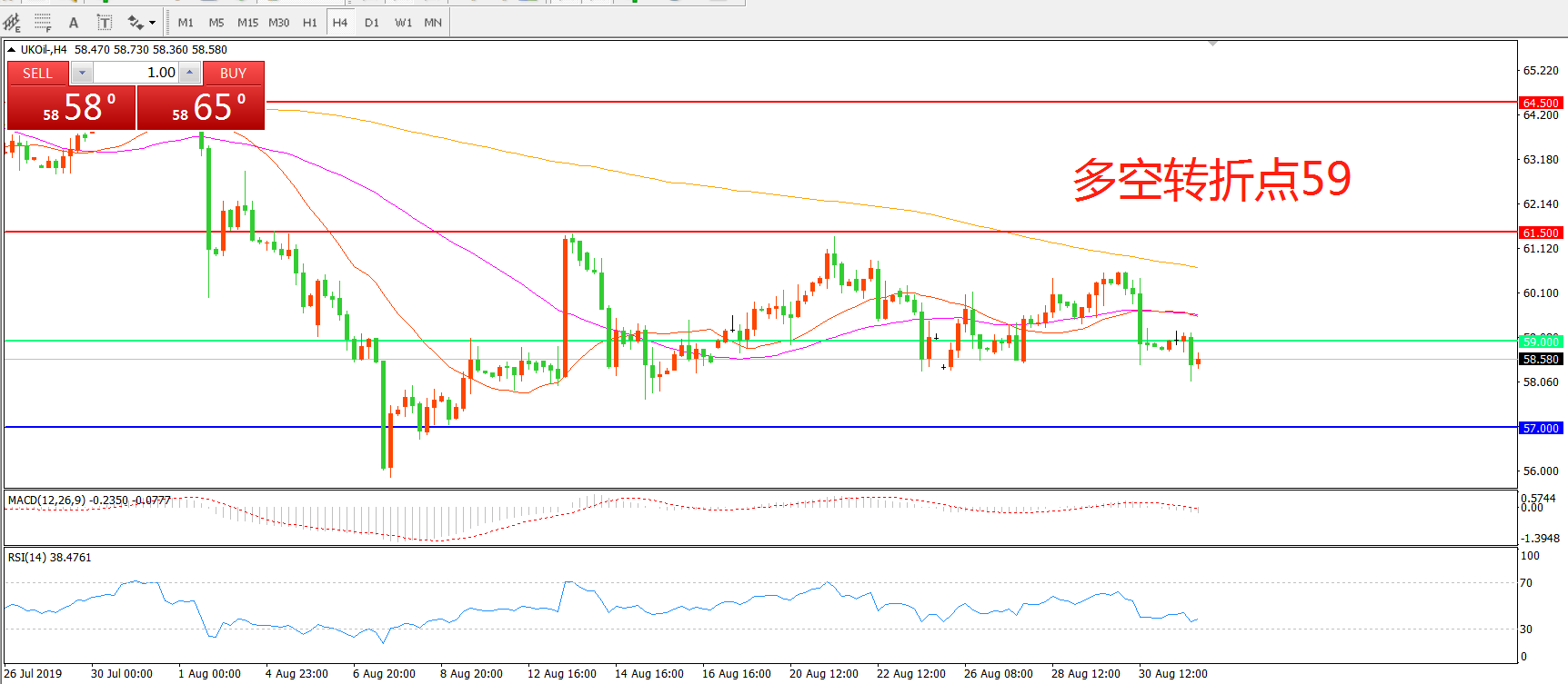 交易策略:在59.00之下看跌,目标57.00 53.00